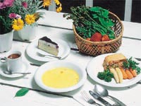 本場イギリスのアフタヌーンティーセット(ホームメイドケーキ、スコーン、フィンガーサンドイッチ、紅茶 .コーヒー /1,350円)でブレイクタイム。大山の清水で抽出した有機コーヒー豆のアイスコーヒー(夏期限定/500円)、。また、ほうれん草 かぼちゃ バナナ等の 野菜ケーキも人気です。 マナーハウスアンティークカフェが紹介されますのでご覧ください。 |